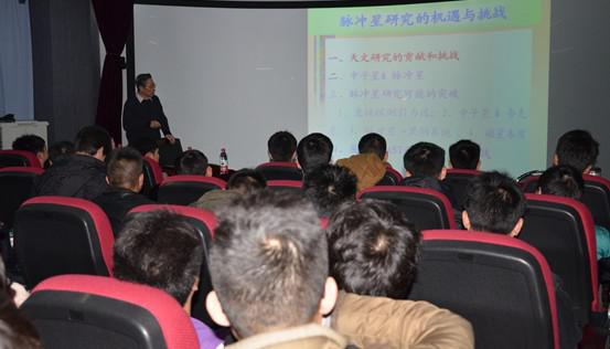 3月25日下午15:00,应物理与电子科学学院、国家天文台-365bet手机邀请,著名天文物理学家,北京大学天文系博士生导师乔国俊教授在田三六楼信息与计算科学重点实验室学术报告厅作了一场题为《脉冲星研究的机遇与挑战》的学术报告。贵州师范大学物电学院师生近100人参加了报告会。报告会由贵州师范大学物理与电子科学学院副院长支启军主持。